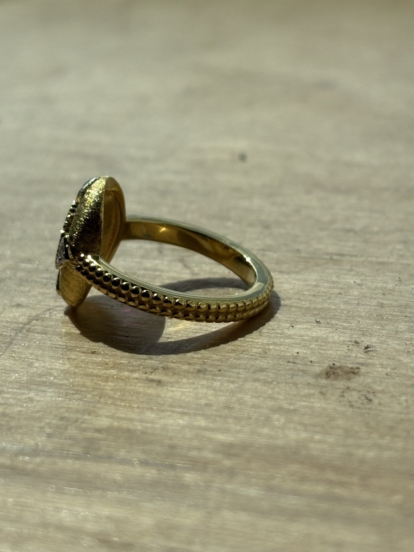 Realizzato in argento sterling 925, questo anello è placcato oro 18k per donare un’eleganza unica e una lucentezza duratura.