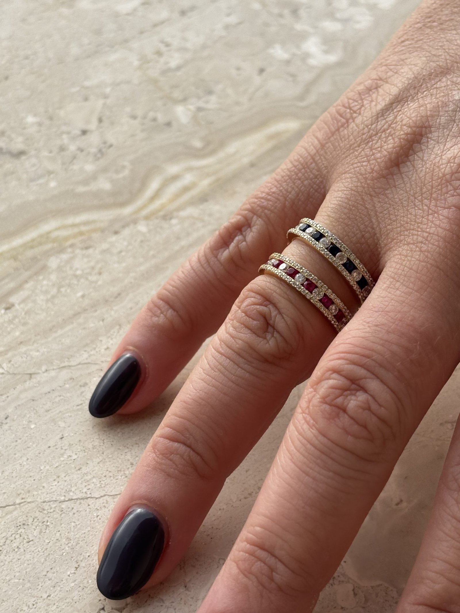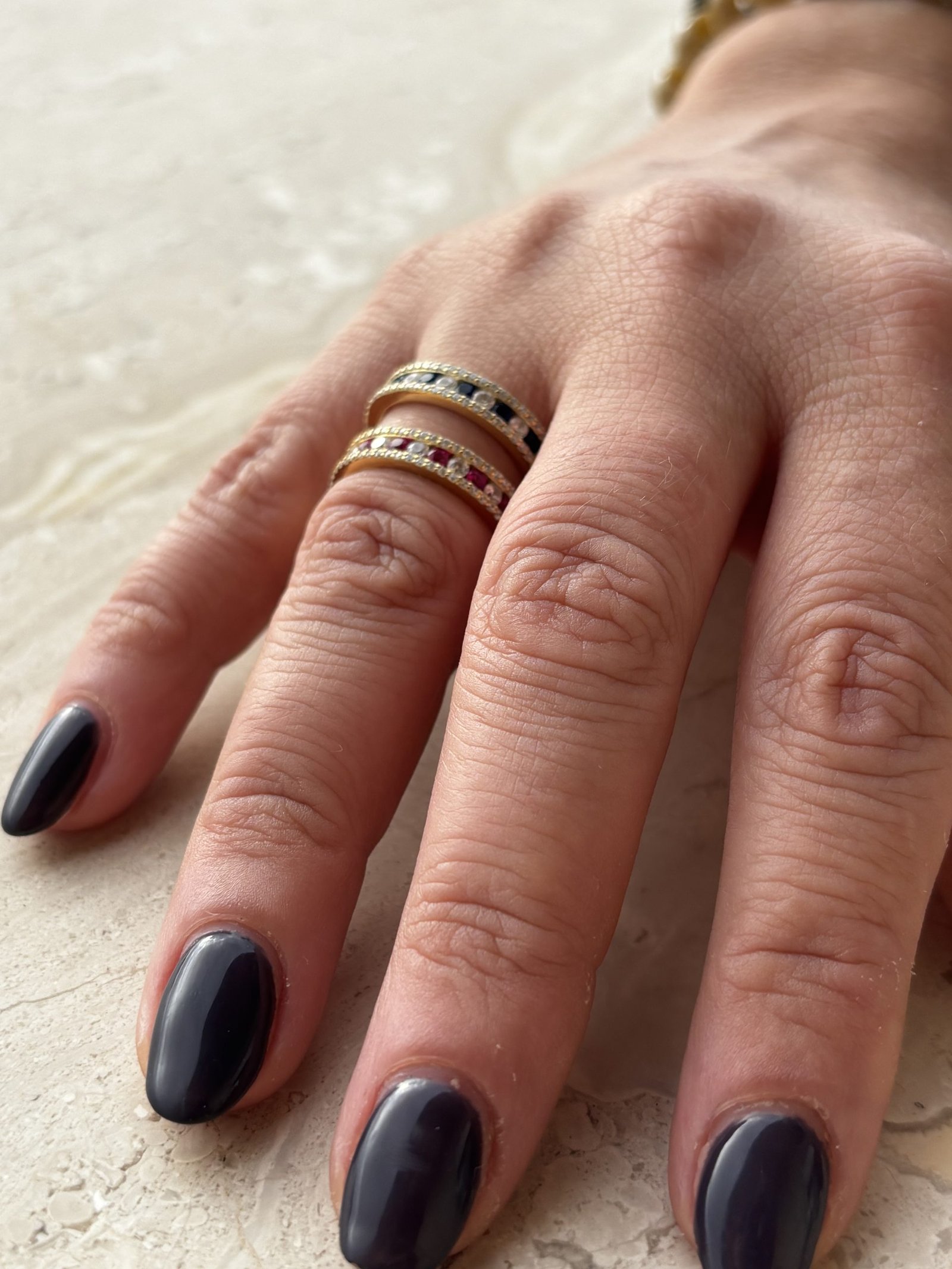 La chiusura regolabile a scomparsa permette di adattare facilmente l’anello alla misura desiderata senza alterarne l’estetica, mantenendo un profilo pulito e continuativo. Ideale per l’uso quotidiano e per chi ama combinare più anelli insieme.