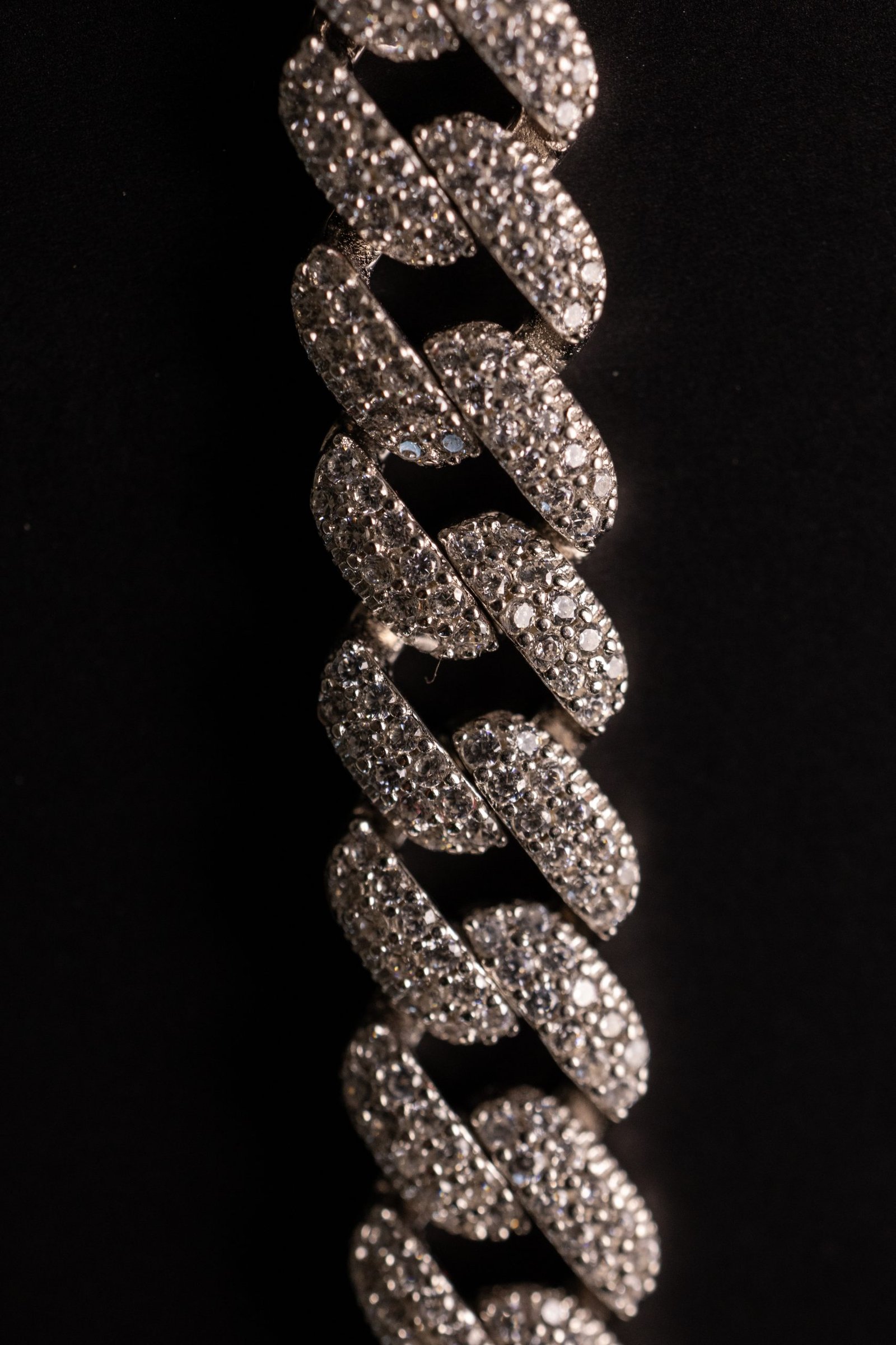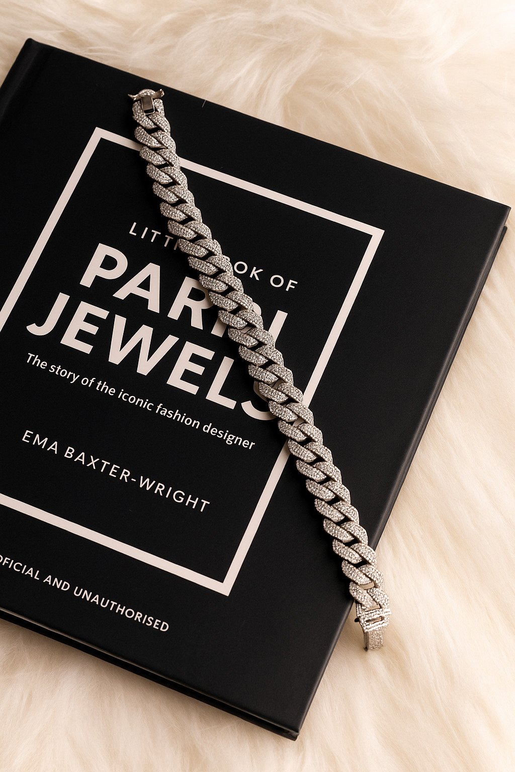 L’effetto pavé regala una luminosità continua e intensa, trasformando questo bracciale in un gioiello protagonista, perfetto sia da solo che abbinato ad altri accessori o orologi per un look più deciso.