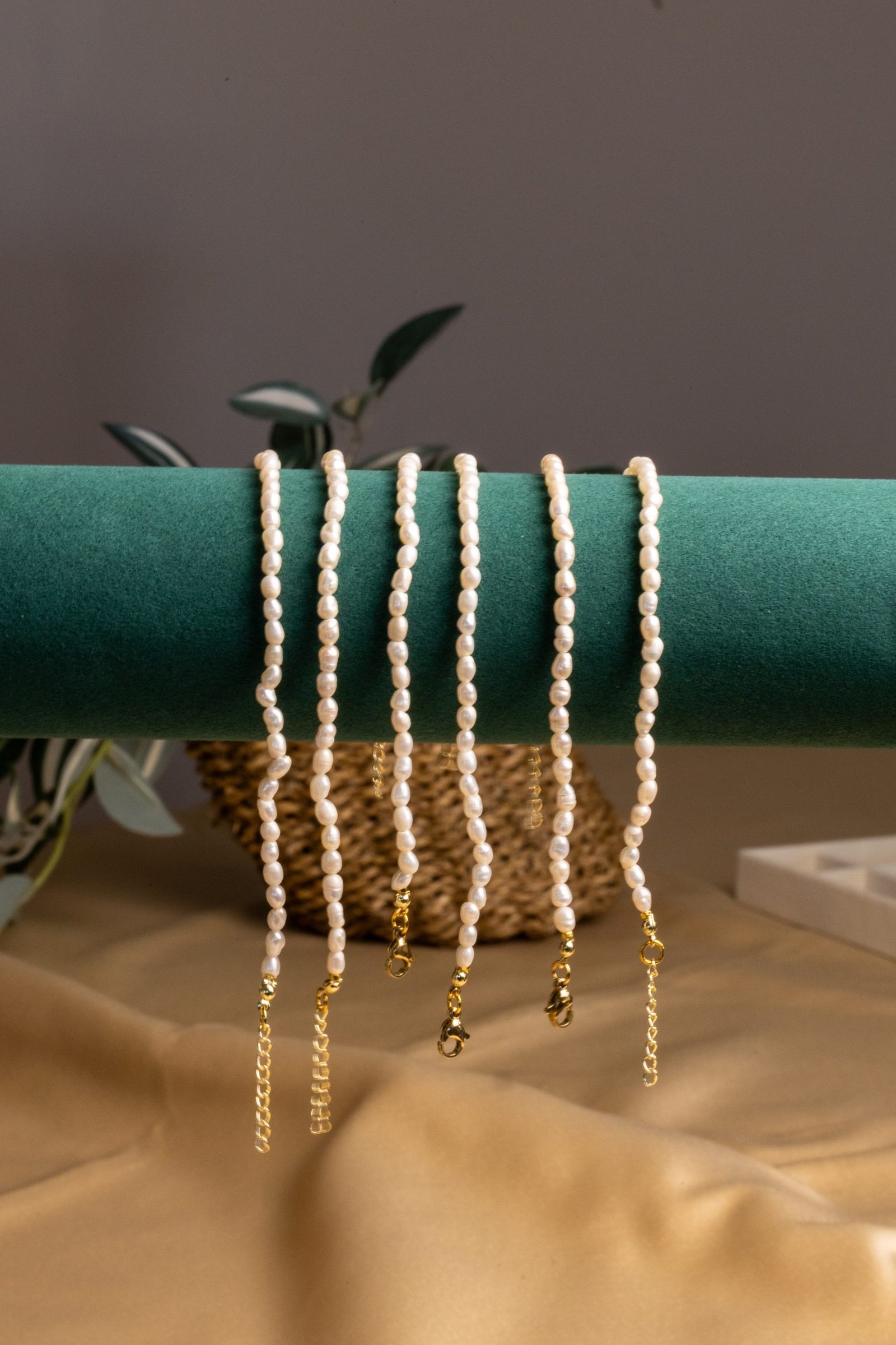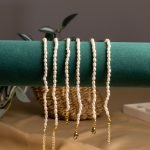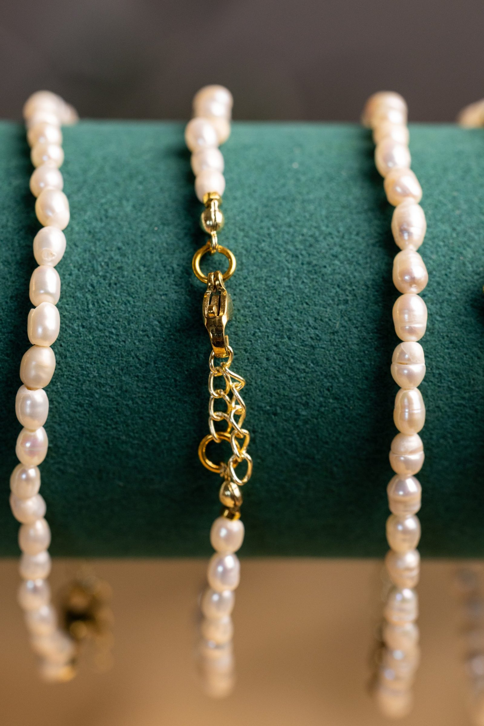 Bracciale in perle d’acqua dolce, di fiume, con dettagli dorati: elegante, irregolare, autentico.