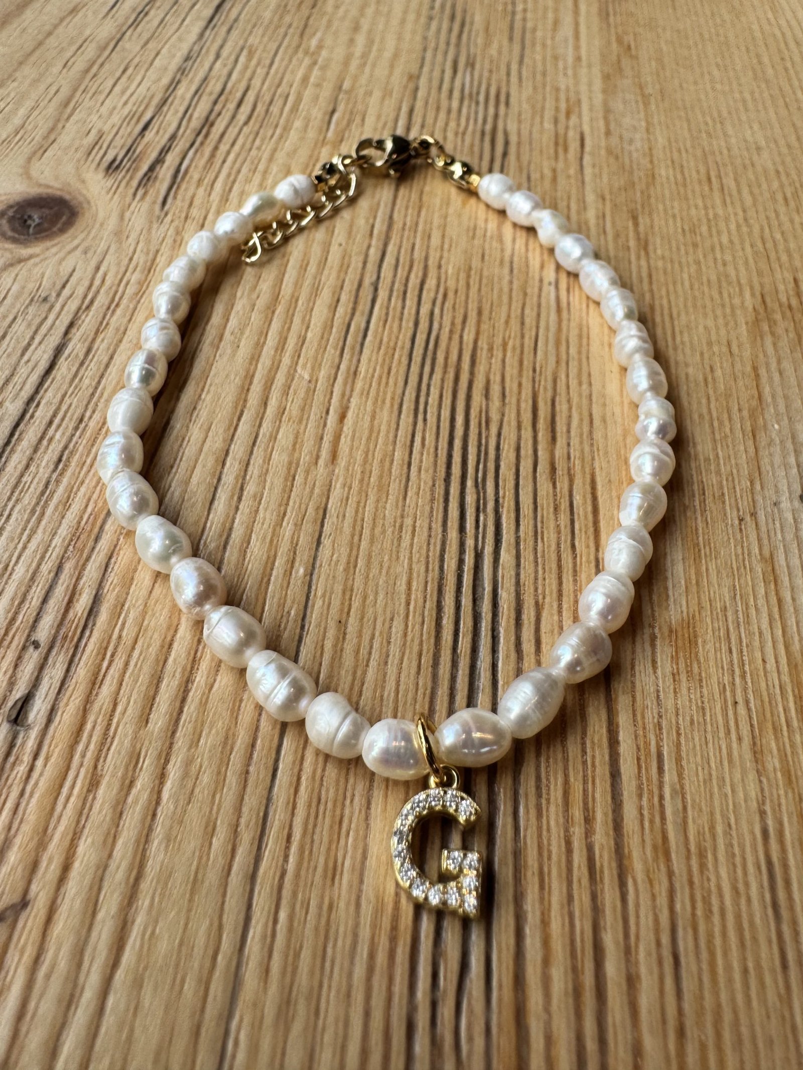 Bracciale Perle di Fiume Naturali – Con Charm Letterina
