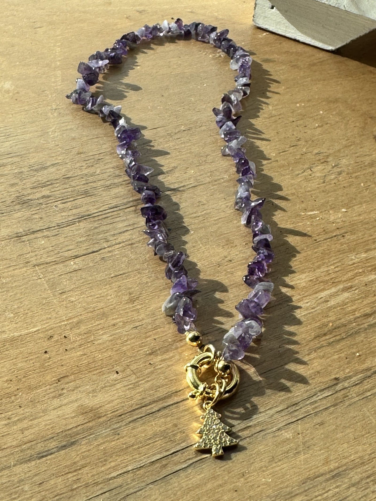 Ogni pietra presenta forme organiche e uniche, donando un effetto luminoso e autentico. Può essere indossata come pezzo singolo o abbinata ad altre collane per uno stile stratificato.