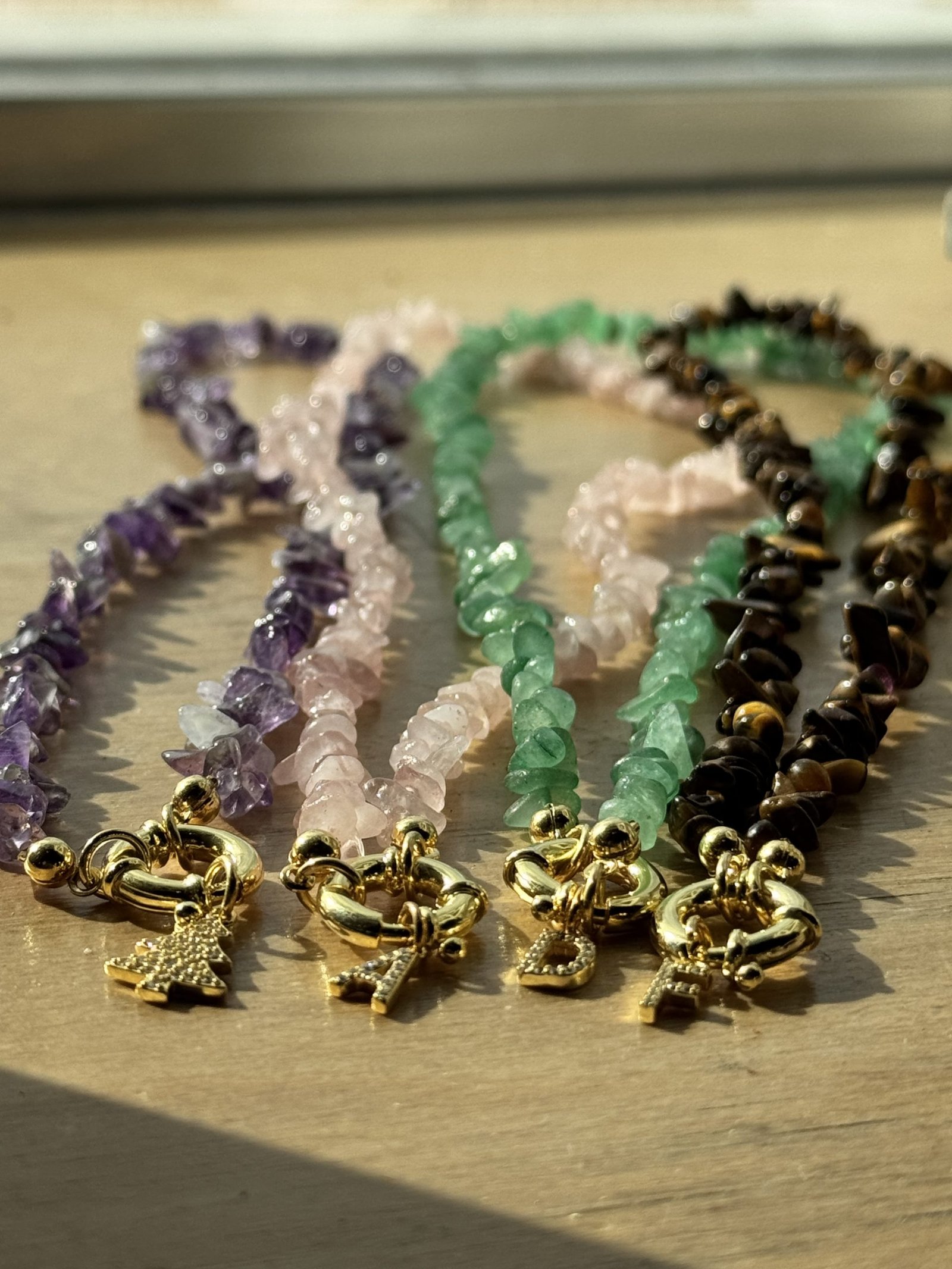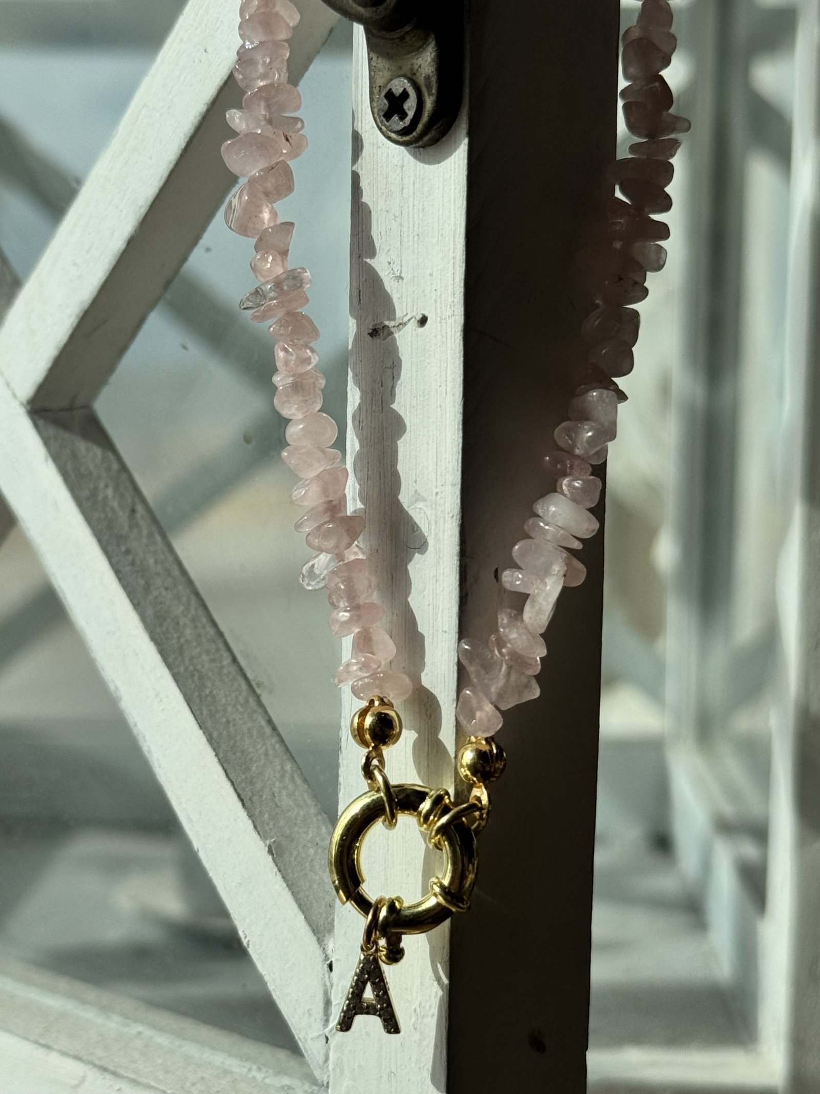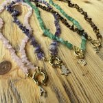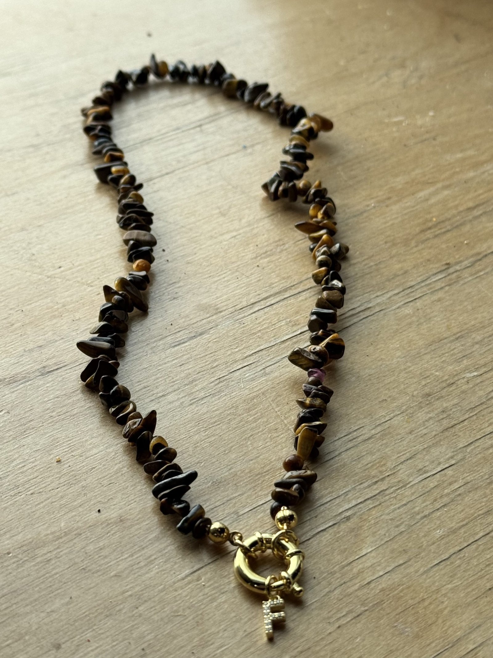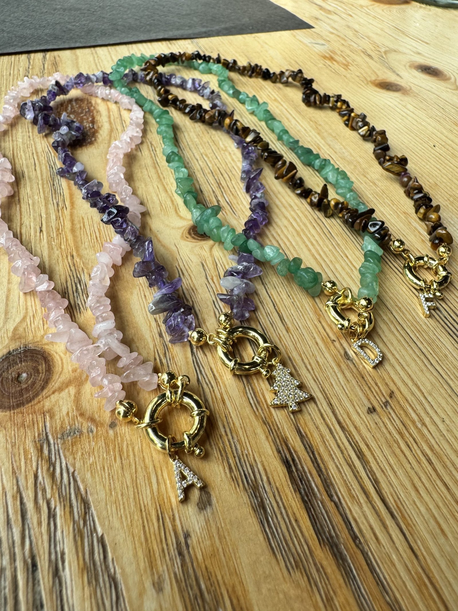 La Collana Chips in Argento 925, è realizzata artigianalmente con pietre naturali dalla forma irregolare, selezionate per colore e trasparenza. Ogni collana è arricchita da una chiusura placcata oro in stile anello a molla e un charm personalizzato, disponibile con letterine. Misura 42 cm.