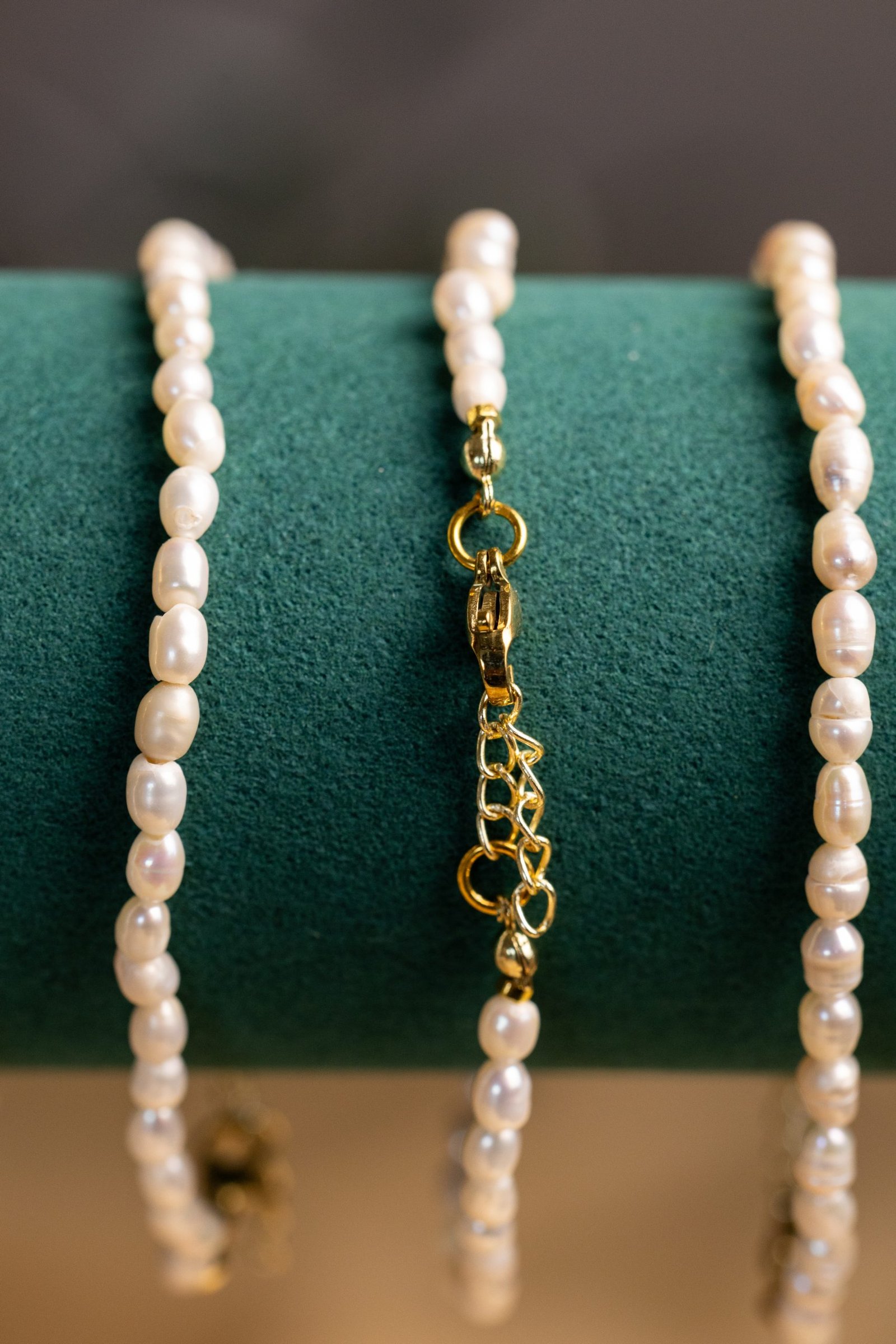 Collana con perle naturali d’acqua dolce e dettagli in argento 925 dorato. Un classico intramontabile, elegante in ogni occasione.