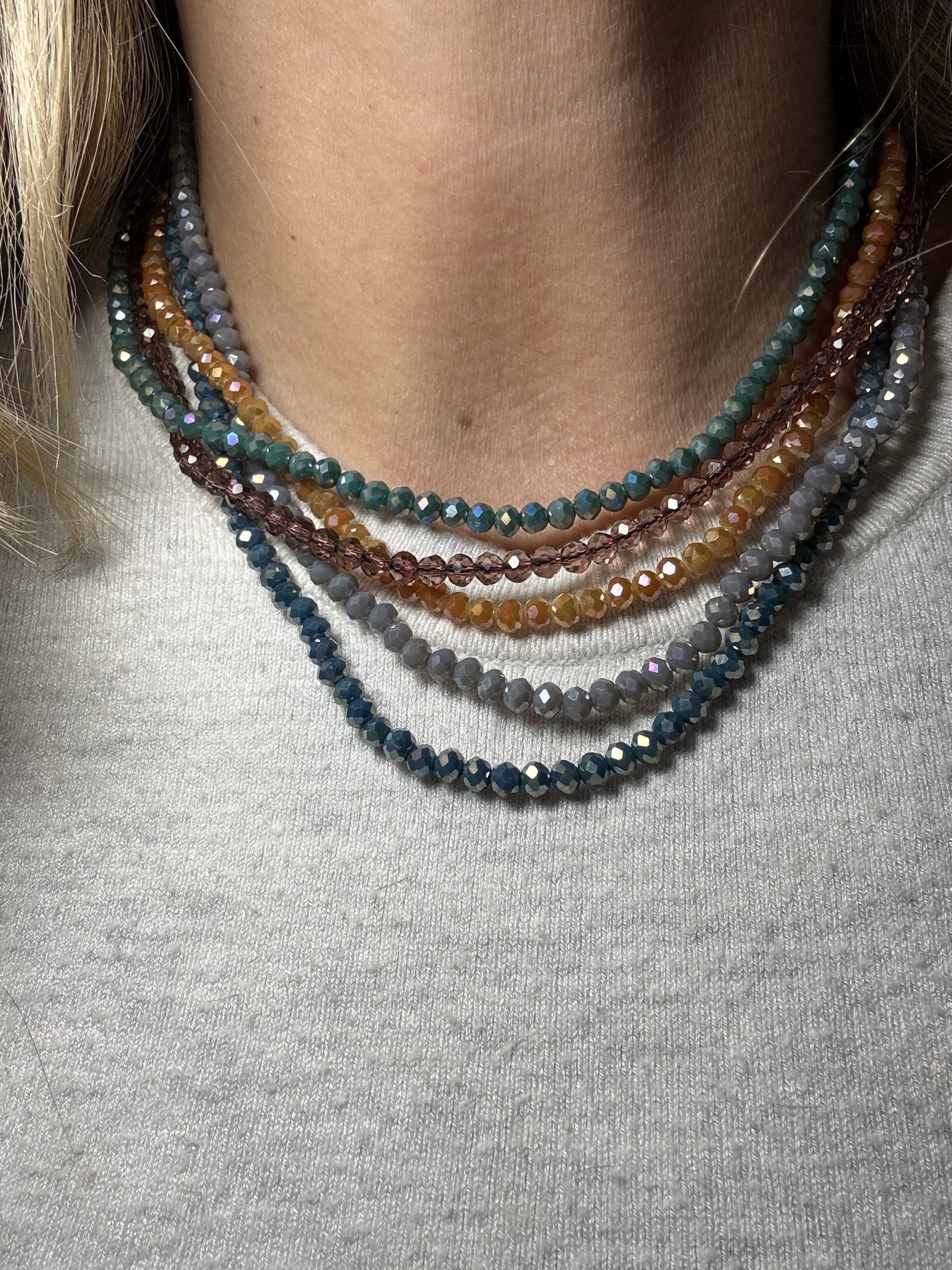 La Collana Perline Cristallo Scintillante è realizzata con perline sfaccettate dal colore intenso e riflessi luminosi, pensate per valorizzare ogni look con un tocco elegante e brillante. Leggera e versatile, si presta sia a uno stile casual che a un outfit più ricercato.