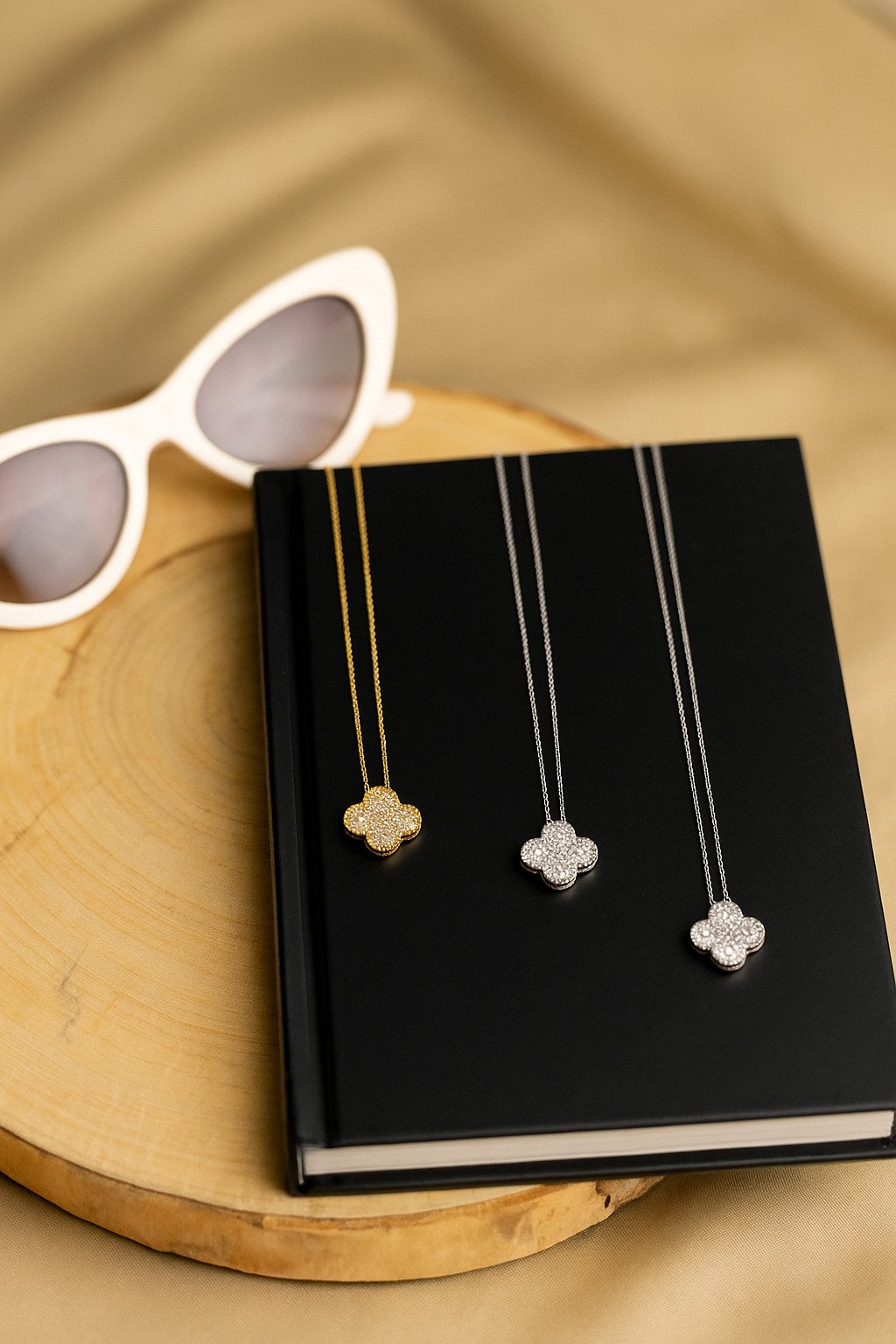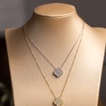 La collana è disponibile in due versioni: con catena e bordo del ciondolo in finitura dorata calda oppure in finitura argentata brillante, entrambe perfettamente abbinate alla luminosità dei cristalli. La catena sottile e delicata dona equilibrio al design, permettendo al ciondolo di rimanere il vero protagonista.