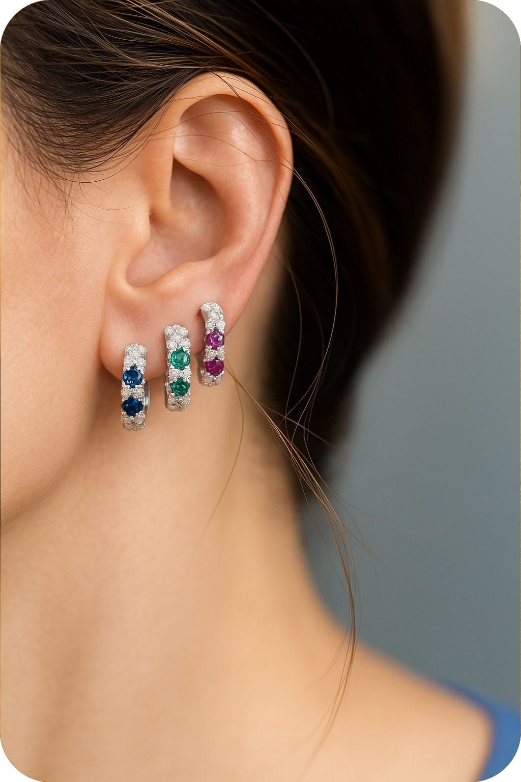 Delicati, luminosi e ricchi di dettagli: gli orecchini Millefiori Mini sono piccoli cerchietti in argento 925, impreziositi da tre pietre colorate incastonate tra scintillanti zirconi bianchi, come piccoli fiori che sbocciano sul lobo.