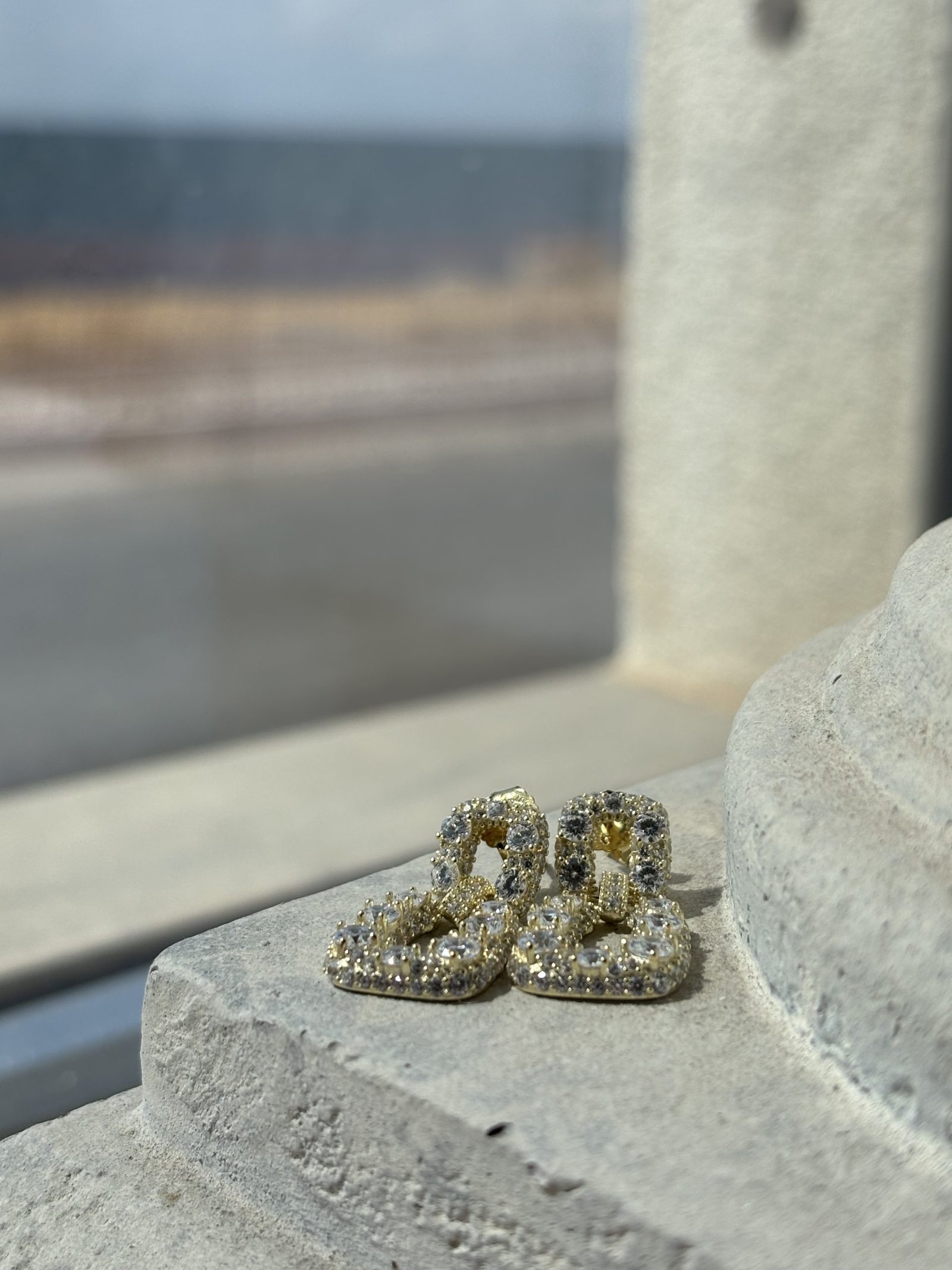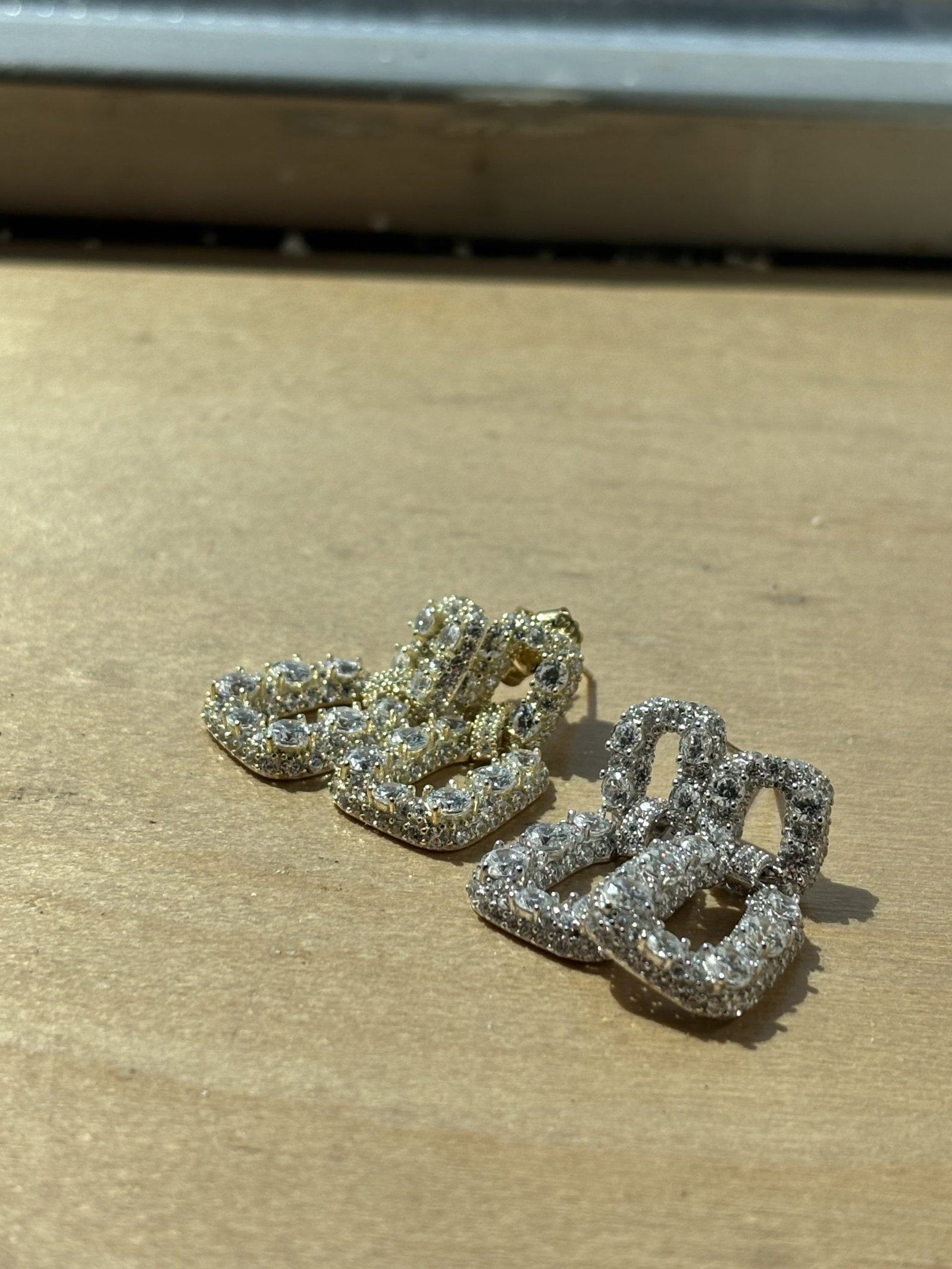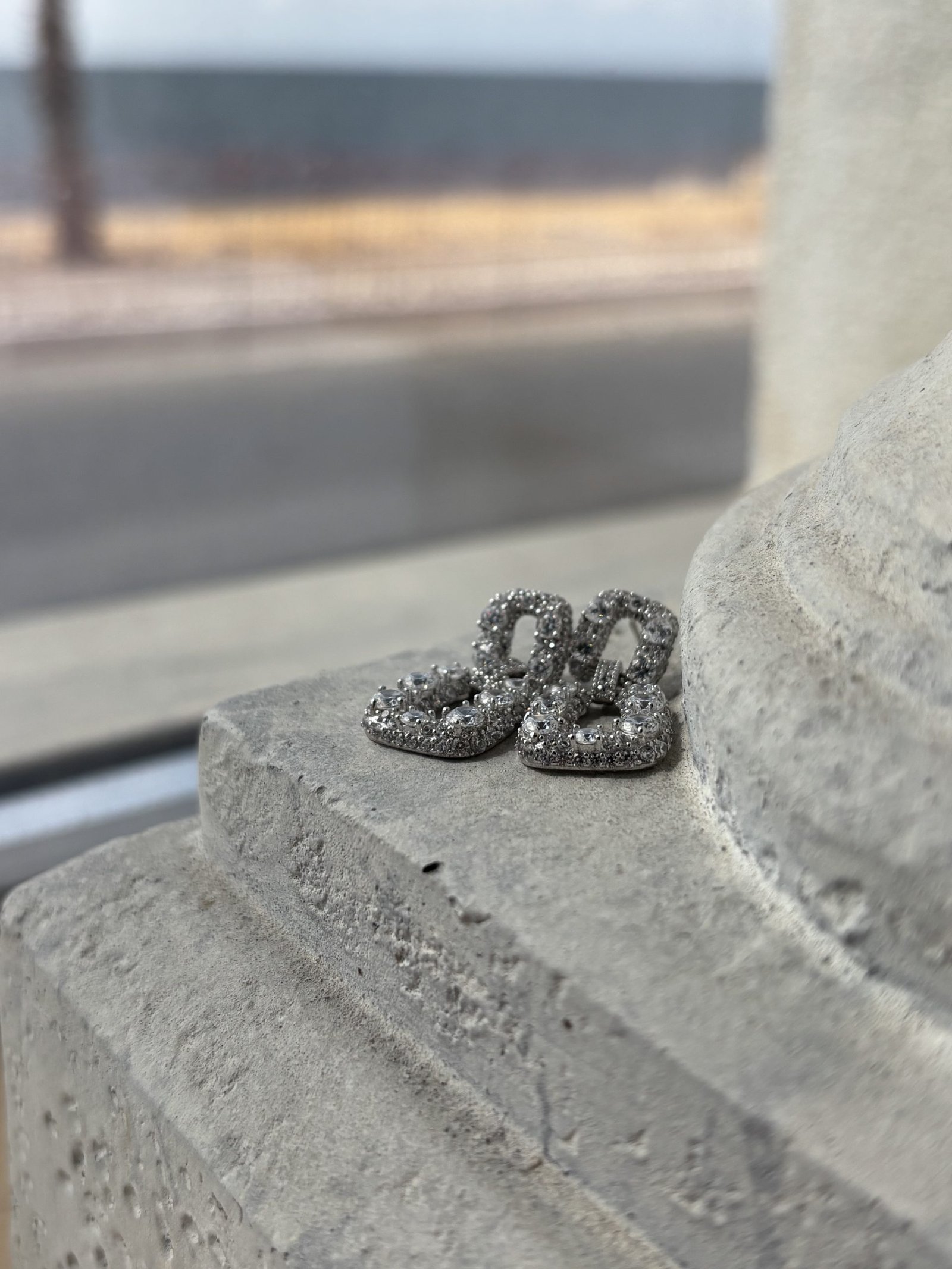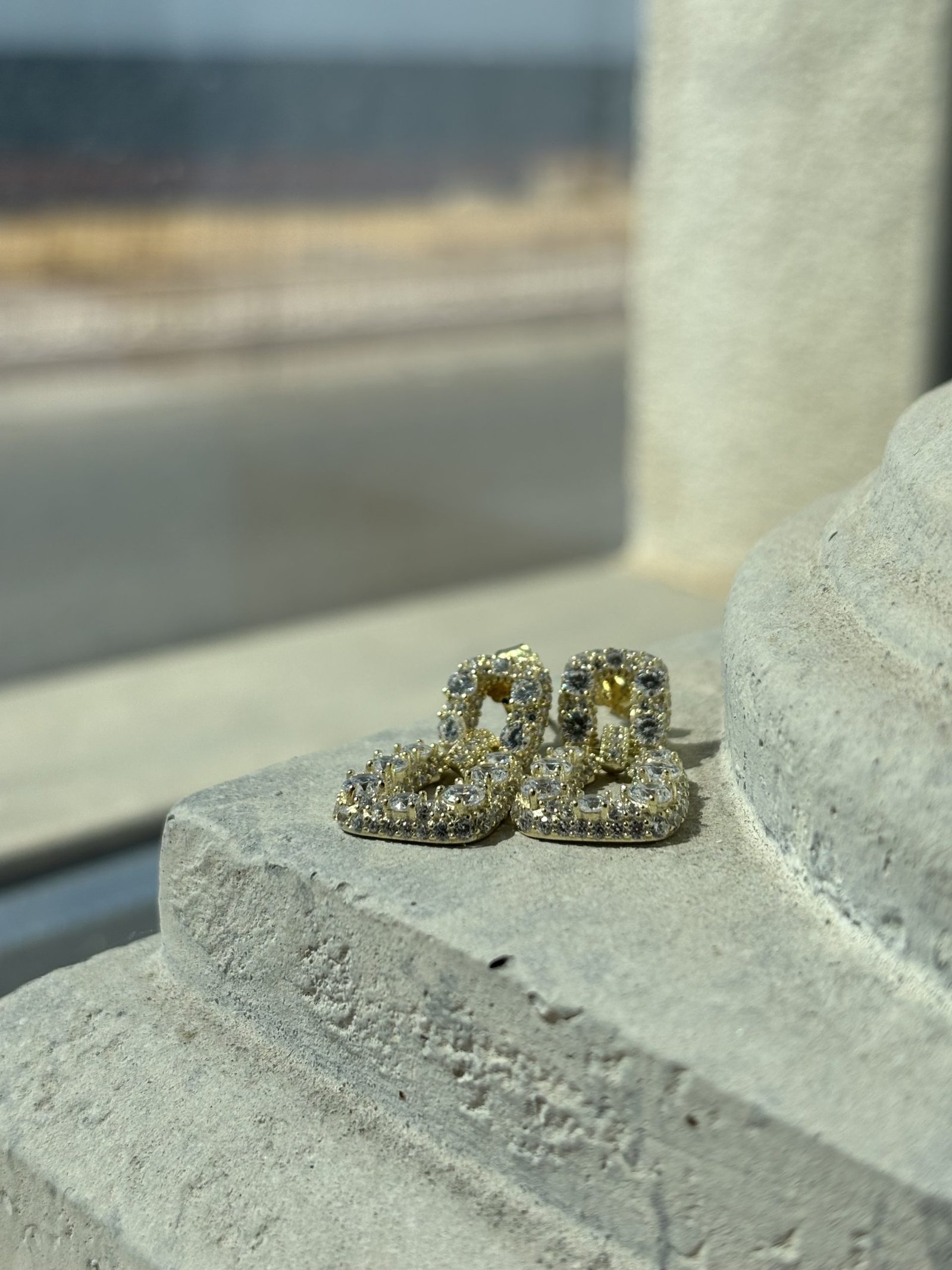 Realizzati in argento 925, questi orecchini presentano due maglie pendenti intrecciate, ricoperte di zirconi che catturano la luce e donano una brillantezza straordinaria.