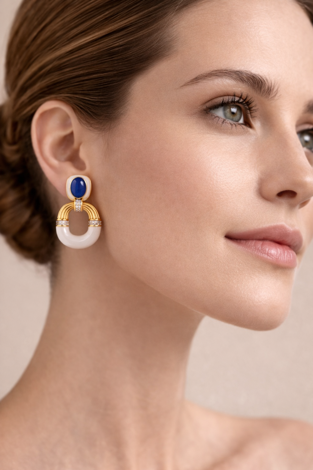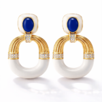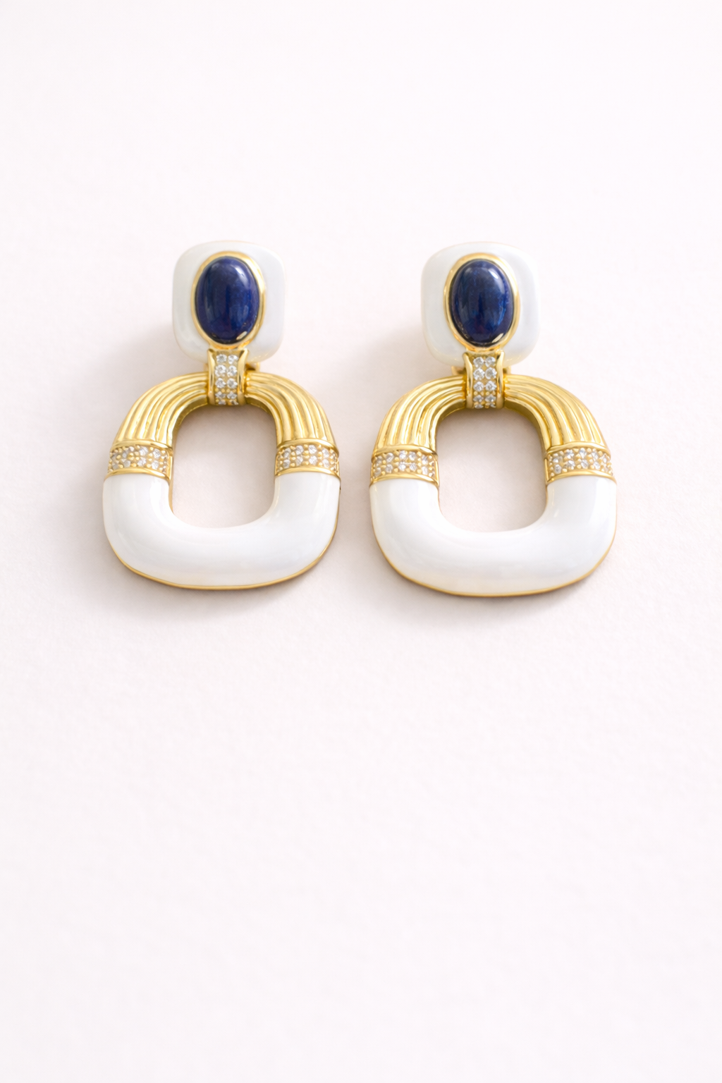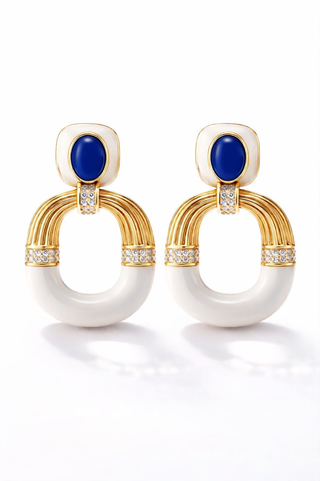 Orecchini Positano Lapis in ottone placcato oro 18 kt, con smalti e pasta di lapislazzuli, arricchiti da dettagli luminosi in imitazione diamante ZC A+. Eleganti e raffinati, perfetti per ogni occasione.