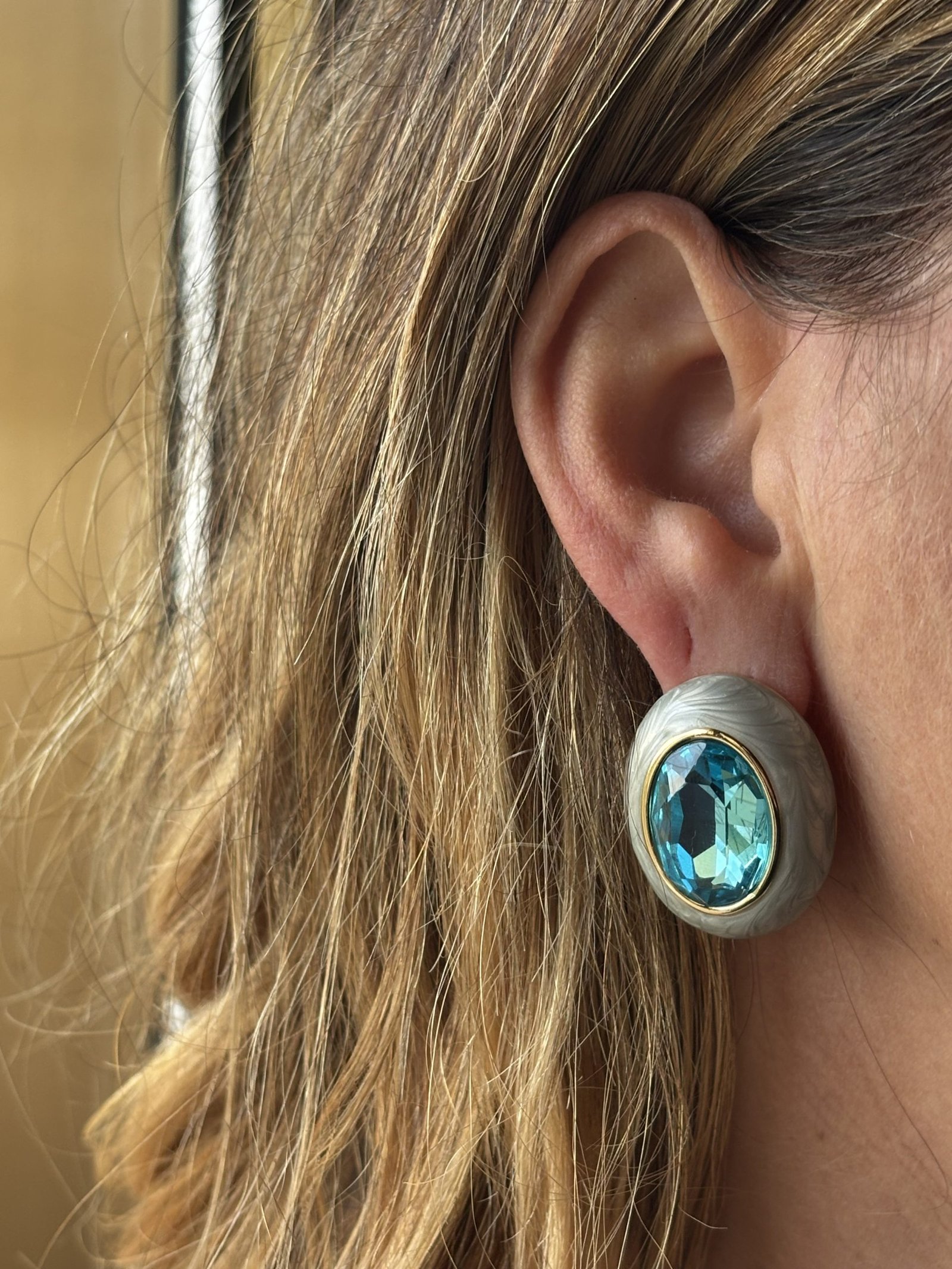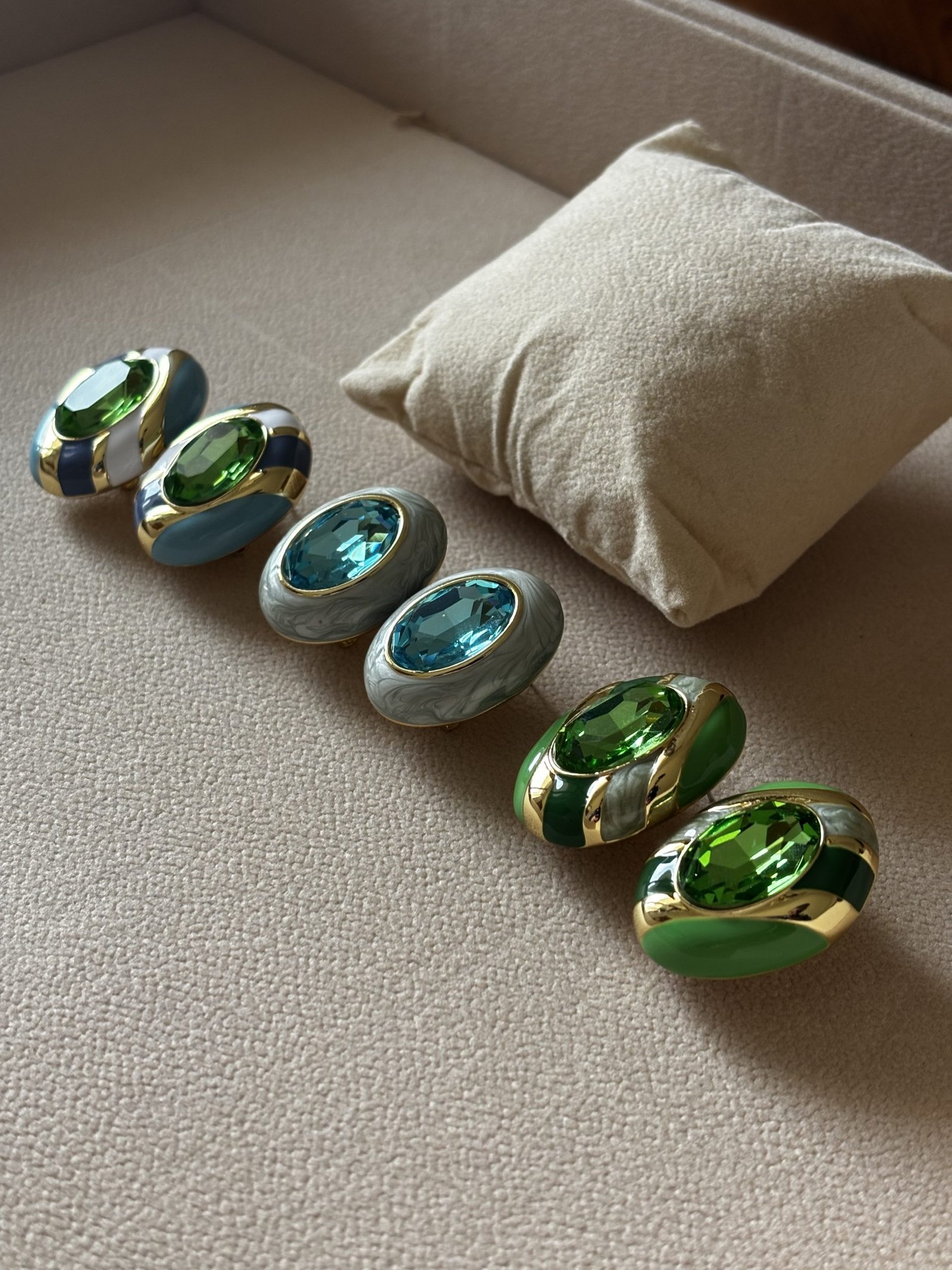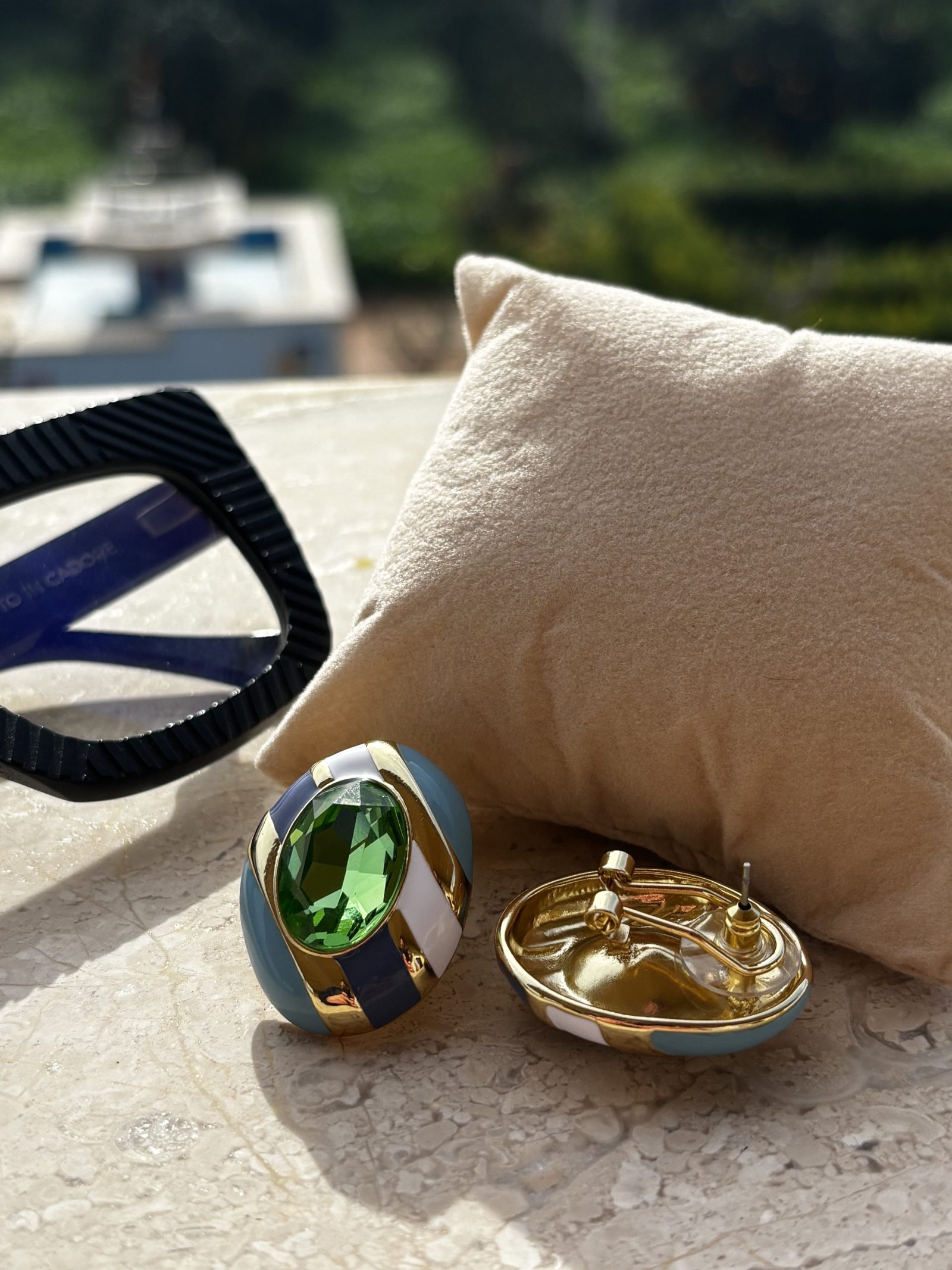 Gli Orecchini Retrò 60 Ovale sono ispirati all’eleganza iconica degli anni ’60, reinterpretata in chiave contemporanea. Il design ovale presenta una base smaltata a fasce colorate con finitura lucida e un cristallo centrale che cattura la luce, creando un effetto sofisticato e glamour.