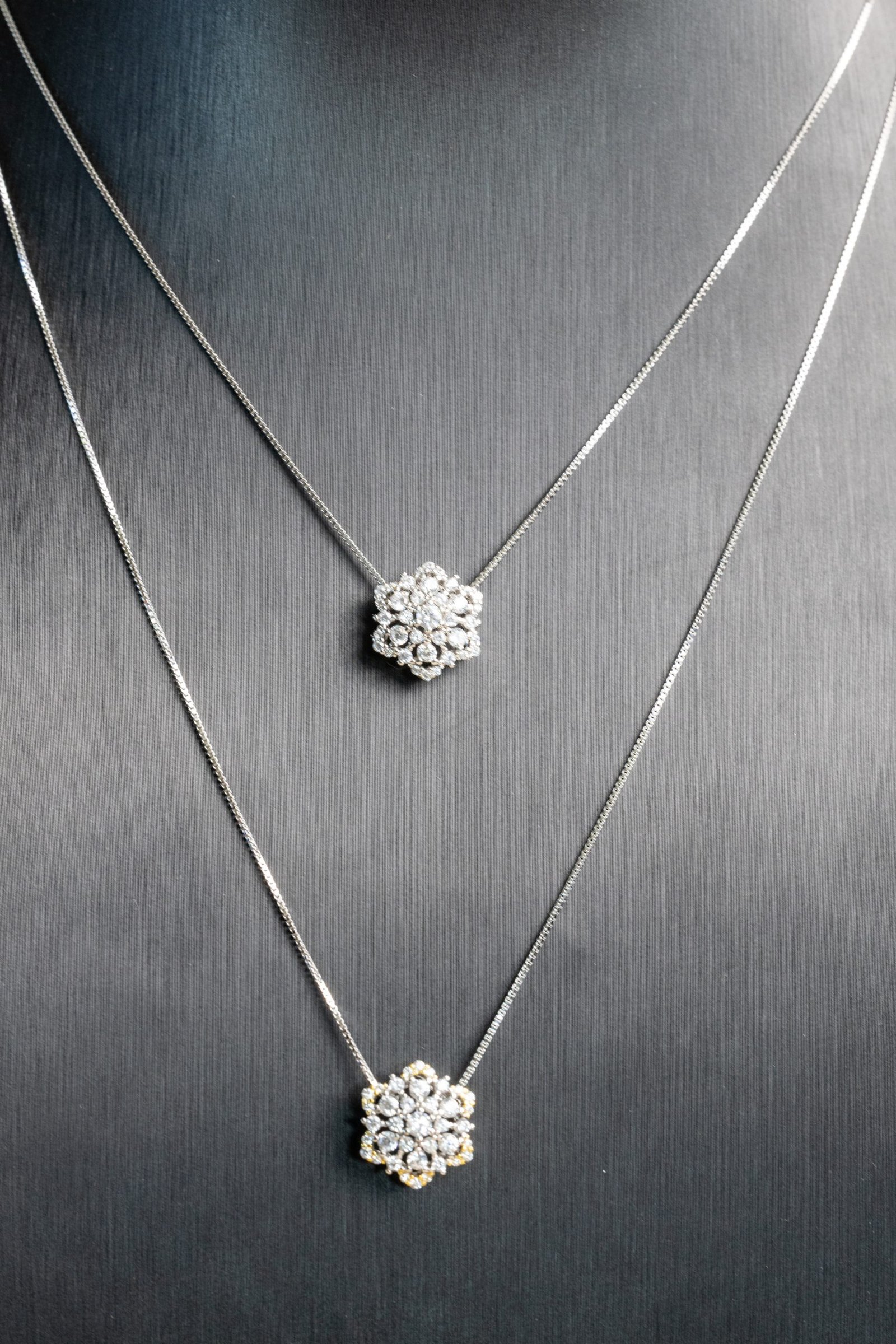 Realizzata in argento 925, la collana unisce una lavorazione artigianale precisa a uno stile deciso, perfetto per dare risalto al décolleté con raffinatezza e carattere.