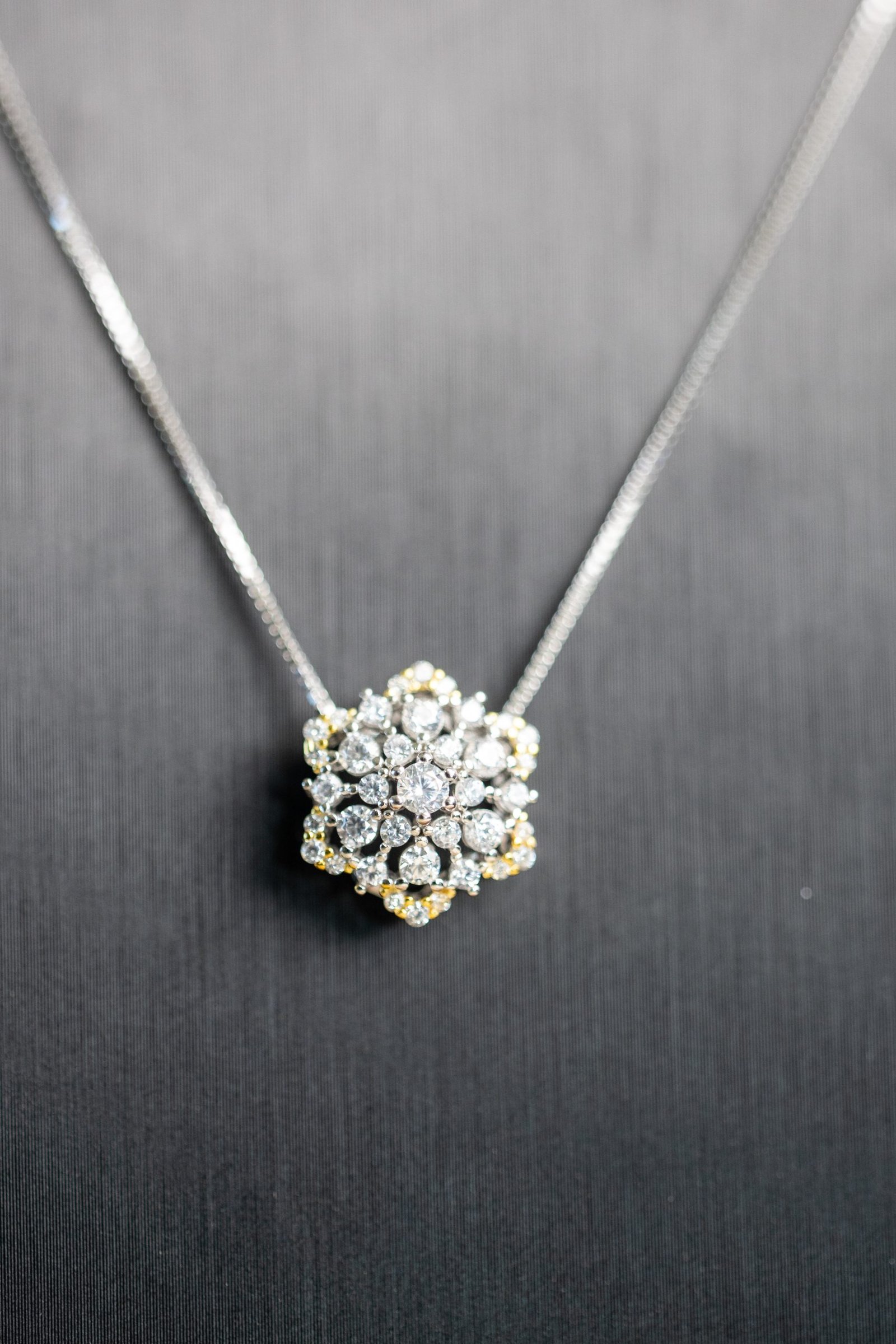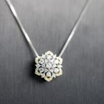 La Queen Royal è una collana dal fascino sofisticato, pensata per chi ama l’eleganza senza tempo. Il pendente a forma di fiore intagliato, arricchito da luminosi zirconi bianchi, ricorda un motivo regale, ricco di dettagli e luce.